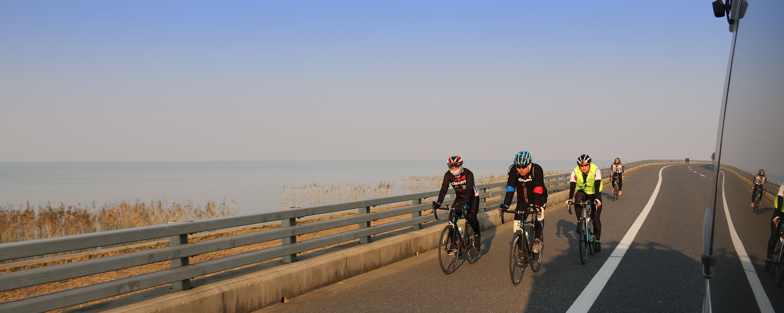 天的行程非常精彩,上午沿着无锡太湖新城的太湖大堤骑行经过贡湖湾湿地公园,公园紧靠太湖,绝对是休闲旅游的不二之选。进入苏州段后骑行环境毫不逊色,远山和太湖遥相呼应,在这里最能亲近自然,让我们身心得到释放。骑行约58km至镇湖午餐,最后的终点是太湖游客中心,随后前往晚餐点,用餐期间颁发骑行证书,晚餐结束,返程。