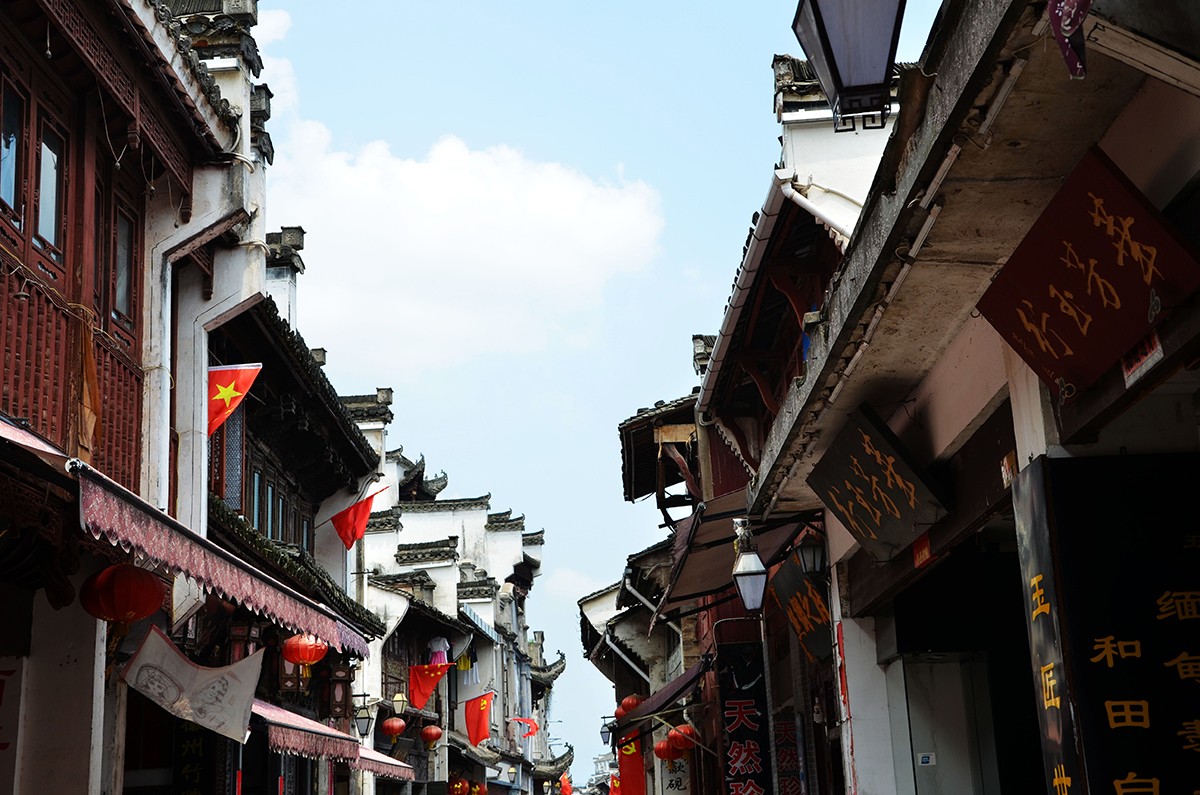 屯溪老街座落在黄山市屯溪区中心地段,北面依山,南面傍水,由不同年代建成的300余幢徽派建筑构成的整个街巷,呈鱼骨架形分布,西部狭窄、东部较宽。因屯溪老街坐落在横江、率水和新安江三江汇流之处,所以又被称为流动的“清明上河图”,是中国保存最完整最具有南宋和明清建筑风格的古代街市,也是中国“全国重点文物保护单位”。