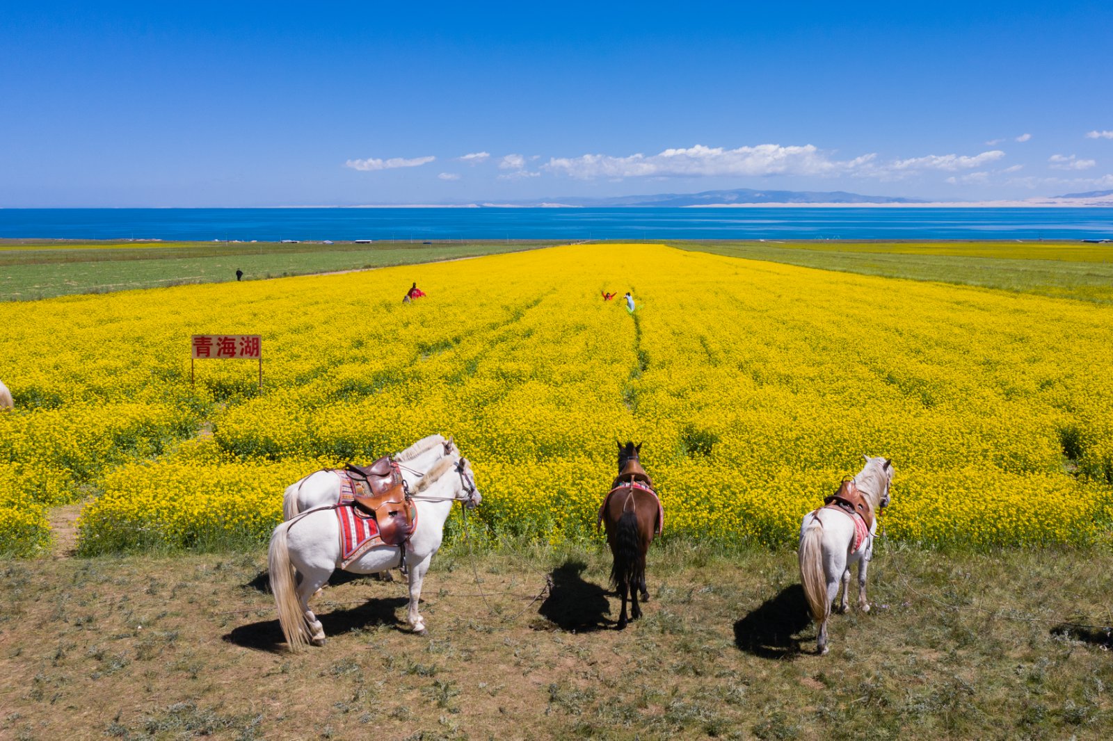 青海湖是中国最大的内陆湖泊,由祁连山脉的雪水汇聚而成。这座青藏高原东侧的神湖浩瀚圣洁,无论你何时前来,都会惊叹于湖水的蔚蓝纯净,草原的广袤无垠。山、湖、草原相映构成一幅壮美风光和绮丽景色的画。